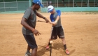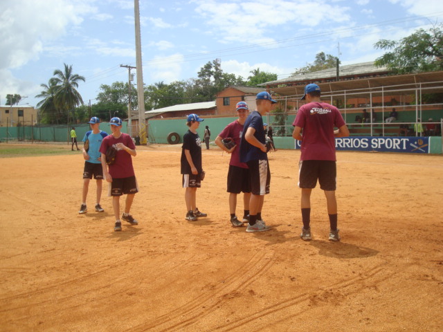 Das „Play“ wie hier in der D.R. jeder Baseballplatz genannt wird, war heute Morgen mit Scouts bevölkert, die Spieler der lokalen Programme wie Ciro Baseball oder Ozuna & Rodriguez begutachteten. Für unsere deutschen Spieler war es auf jeden Fall interessant zu sehen, wie so etwas auf höchstem internationalen „non drafted free agent“-Niveau aussieht. 16-jährige, die mid-90-ies werfen gegen junge, hungrige Hitter, die volle Lotte dagegen halten. Dann kam der kurze Regenguss, Zeit nochmal über Verschiedenes zu sprechen, bevor wir dann doch noch trainieren konnten. Zwischendurch musste der müde Schildwall nochmal daran erinnert werden, dass es wenn es leicht wäre ja jeder könnte.