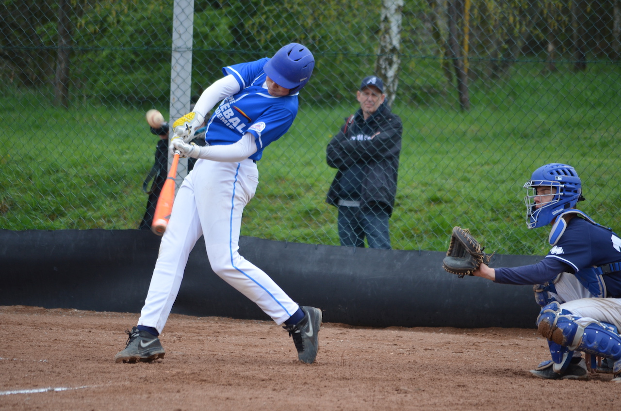 Samstag pünktlich um 10.00 Uhr startete das Viertelfinale gegen die Akademie auf Bordeaux/FRA. Nicolai Kirchhoff bekam wieder den Ball und zeigte eine überragende Leistung. Die Franzosen blieben ohne Chance und selbst wenn sie es mal auf Base schafften wurden sie per Caught Stealing zurück zur Bank geschickt. Offensiv schepperte es von beginn an. Merlin Bendlin eröffnete mit einem Double, Joshua Steigert folgte mit einem weiteren. Insgesamt bleiben auch die Franzosen blass und chancenlos gegen einen starken Nicolai Kirchhoff, der das komplette Spiel zu Ende warf, wenn man das nach 4 Innings so sagen darf. Beste Offensivakteure waren Merlin Bendlin mit einem Double und einem Homerun und Marco Iberle mit drei Doubles.