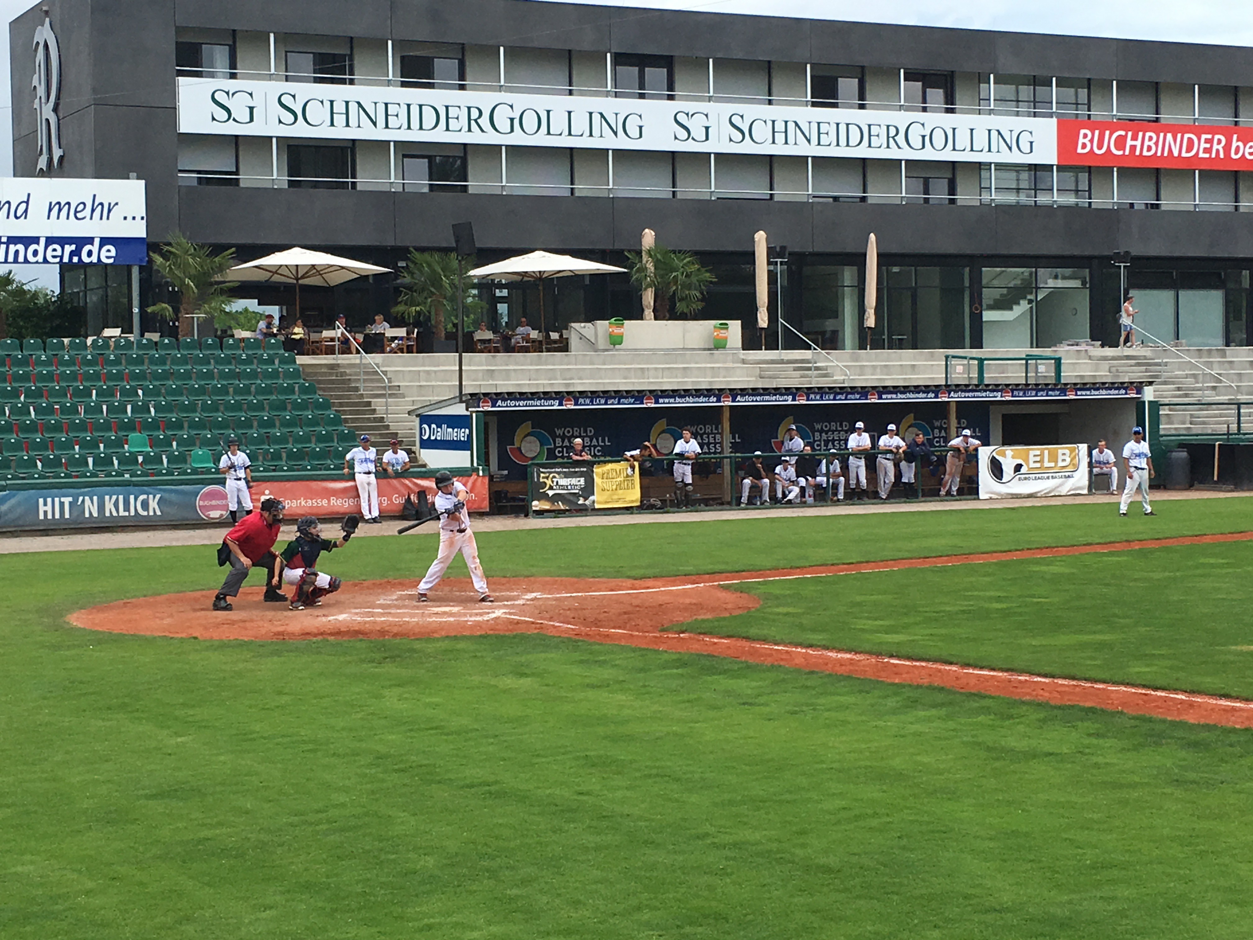 Nach dem 9-6 gegen Regensburg am Freitagabend konnten die DBA Allstars auch ihr zweites Spiel gewinnen. Während gegen das bayrische Internat noch Einiges nicht so lief, zeigten sich die Jungs heute voll konzentriert, fokussiert und mental tough. Paderborn ging zwar im ersten Inning mit 2-0 gegen DBA Starter Samuel Steigert (4IP) in Führung, doch danach lief alles super. Shortstop Simon Liedtke machte ein sehr starkes Spiel aber auch alle anderen agierten fehlerfrei. Im 2. Inning gelang der erste Run und dann der Ausgleich, im 3. dann die 3-2 Führung und im 4. Inning dann mit 7 Runs die Vorentscheidung. Wichtige Hits hatten Luca Helber, Simon Liedtke und Marcel Giraud. DBA Reliever Henry Matzpreiksch pitchte auch dank des guten Spiels von Catcher Fabian Weil beeindruckend, Leftfielder Demetrio Cataldo warf einen Läufer an der Homeplste aus und sorgte dann im 7. Inning mit einem Mordsschlag über den Centerfielder für den 12-2 Walk-Off Sieg nach Mercy Rule.