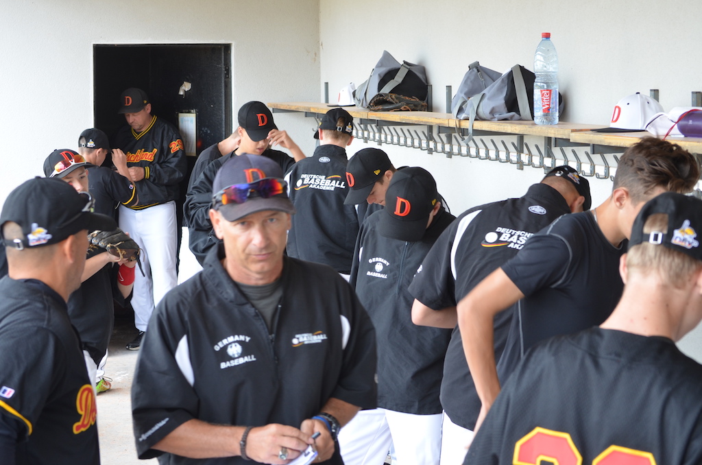 2nd Baseman (ab dem 5. Inning Shortstop) Merlin Bendlin hatte als zweiter Batter im ersten Inning einen satten Hit, dann noch einen Blooper im achten, Colin Holzwarth im 4. Inning auch noch einen Double, sonst konnte man harte Kontakte an einer Hand abzählen. Leftfielder Marco Iberle gelang im 9. Inning noch ein Buntsingle. Starter Robert Blesing kam im ersten Inning mit einem Run bei 2 Hits, 3 Walks und einem Error des 3rd Baseman dank eines Doubleplays glimpflich davon. Im 2. Inning gelang den Franzosen aufgrund eines Walks und eines Hit by Pitches ein weiterer Run, auch jetzt stand die Defensive. Im 3. Inning zogen die Gastgeber dann sogar mit drei weiteren Runs zur 5-0 Führung davon, vier Walks waren der Grund dafür. Bei zwei Outs kam dann Elian Gentner als Pitcher und sorgte mit einem K erstmal für Ruhe. Im vierten Inning dann aber doch noch ein Run gegen die DBA All Stars nach drei Hits des Gegners. Die Innings 5 und 6 konnte Elian zu Null gestalten, obwohl den Franzosen, die mental hell wach und green waren noch ein paar schöne Hits gelangen. Die Innings 7 und 8 warf dann Nikolai Kirchhoff, der doch ein sehr gutes Outing hatte. Im Feld konnten die Jungs des Öfteren gute Plays machen (Bäumer, Still, Bendlin), sonst wäre es eine Blamage geworden. Am Schlag ging wie gesagt nichts gegen ziemlich gutes französiches Pitching aber auch nichts gegen die eher schwachen Werfer mit denen man es ab dem 7. Innings zu hatte. Nur den Ehren-Run konnte im 8. Inning Merlin Bendlin über die Platte laufen. Endstand 1 – 6. Na ja, die Memory ist short, der Bounceback ist quick. Morgen wird wieder hart trainiert und auch gespielt. Dafür sind wir ja schon da, um in Wettbewerbsmodus zu kommen, im Trainingsspiel sollte man allerdings locker sein und trainieren, gut zu spielen. Ich bin mir sicher, dass wir das auch noch hinkriegen.