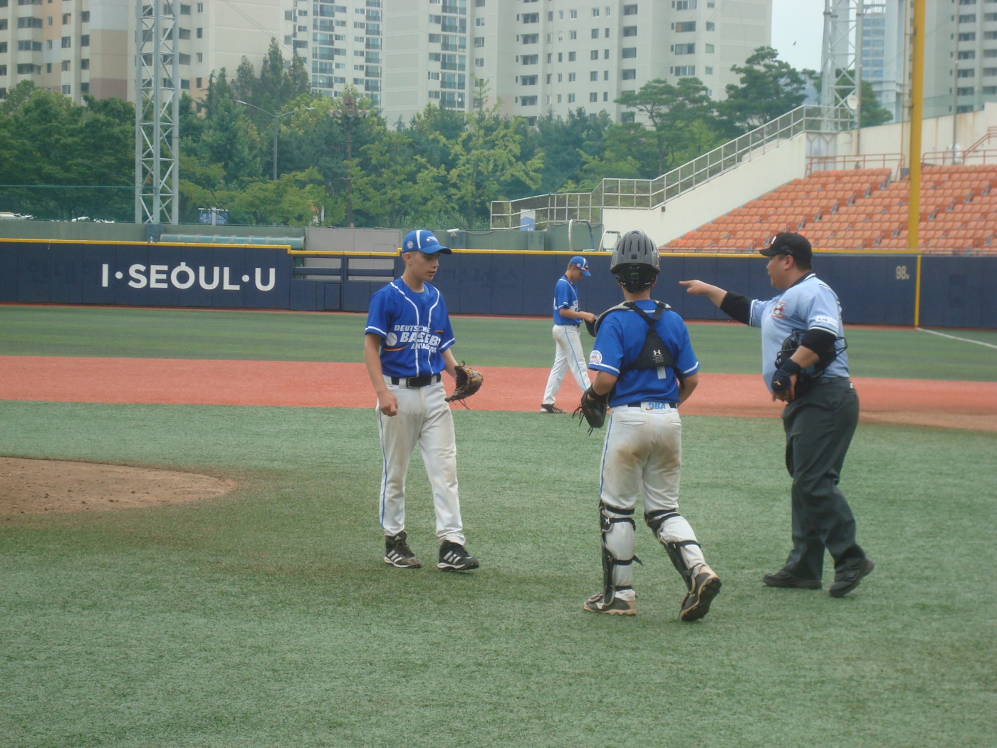 Doch die Koreaner schüttelten sich und antworteten mit Homerun, Double, Triple und Hits mit einem Walk dazwischen. Leftfielder Elias Redle konnte zwei weitere weite Schläge fangen. Im 7. Inning gelangen Jonas Van Bergen und Simon Liedtke wieder schöne Basehits, eingebettet allerdings in Strike Outs. 3 – 11 Endstand aus deutscher Sicht. In diesem Spiel hatte man aber trotz des Spielstandes dem Gegner Paroli geboten, sich für die Leistungen gegen San Diego und Australien rehabilitiert.