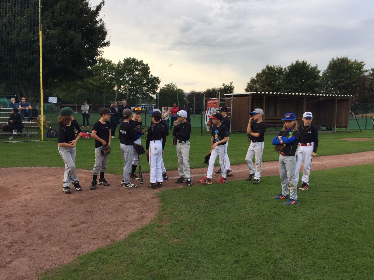 Am Sonntag war der böse Wetterzauber wieder vorbei, ein wunderschöner, wolkenloser Sommertag bat den vielen anwesenden Eltern und den Coaches Gelegenheit die U12 Nationalmannschaftsaspiranten wieder in Aktion zu sehen und damit setzte sich der schwierige Teil der Mission fort: Die 28 Spieler, die zur nächsten Maßnahme im Spätwinter 2018 eingeladen werden, mussten identifiziert werden, was heißt, das für 19 junge Talente erstmal Schluß ist. Das ist im Leistungssport normal und es bieten sich immer wieder neue Chancen. Aus den 28 Spielern wird dann ab Ende Winter/Frühjahr nach und nach bei verschiedenen Camps und Maßnahmen auf die Zielzahl 16 reduziert, mit denen wir die EM (02.07.2018 – 08.07.2018 in Budapest, Ungarn) bestreiten wollen. Wie immer braucht man 2 gute Catcher, mindestens 7-8 international wettbewerbsfähige Pitcher, Outfielder und Middle- und Corner Infielder mit Potential, die möglichst coachable, entwicklungsfähig, athletisch, charakterlich passend und ehrgeizig sind, um eben Erfolg zu haben. Warum so erfolgsorientiert?….weil´s geil ist.