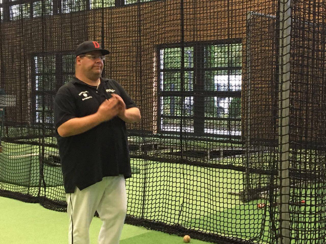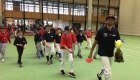 Nach den Stationen konnten sich alle Spieler, aufgeteilt in vier Teams, parallel auf den beiden Schülerfeldern bei 60 Minuten Coach’s Pitch Spielen schon mal für die Spiele des Wochenendes einspielen. Am Samstag begannen am Vormittag die Spiele, da die Wettervorhersage einen verregneten Nachmittag versprachen und so kam es auch. Zum Glück bietet der Baseballteil des Ahorn Sportparkes mit drei Batting Cages und größzügiger Spielfläche genug Raum auch indoor den 47 Jungs ein detailliertes Programm im Pitching, Catching, Infield, Outfield und Hitting zu bieten. In fünf Gruppen eingeteilt (je nach im Vorfeld angegebenen Positionen) ging es konzentriert zur Sache.Das Niveau war für 10-11-jährige Schülerspieler allgemein ziemlich hoch, mir hat es großen Spaß gemacht und soviel ich gehört habe, den Kids auch.