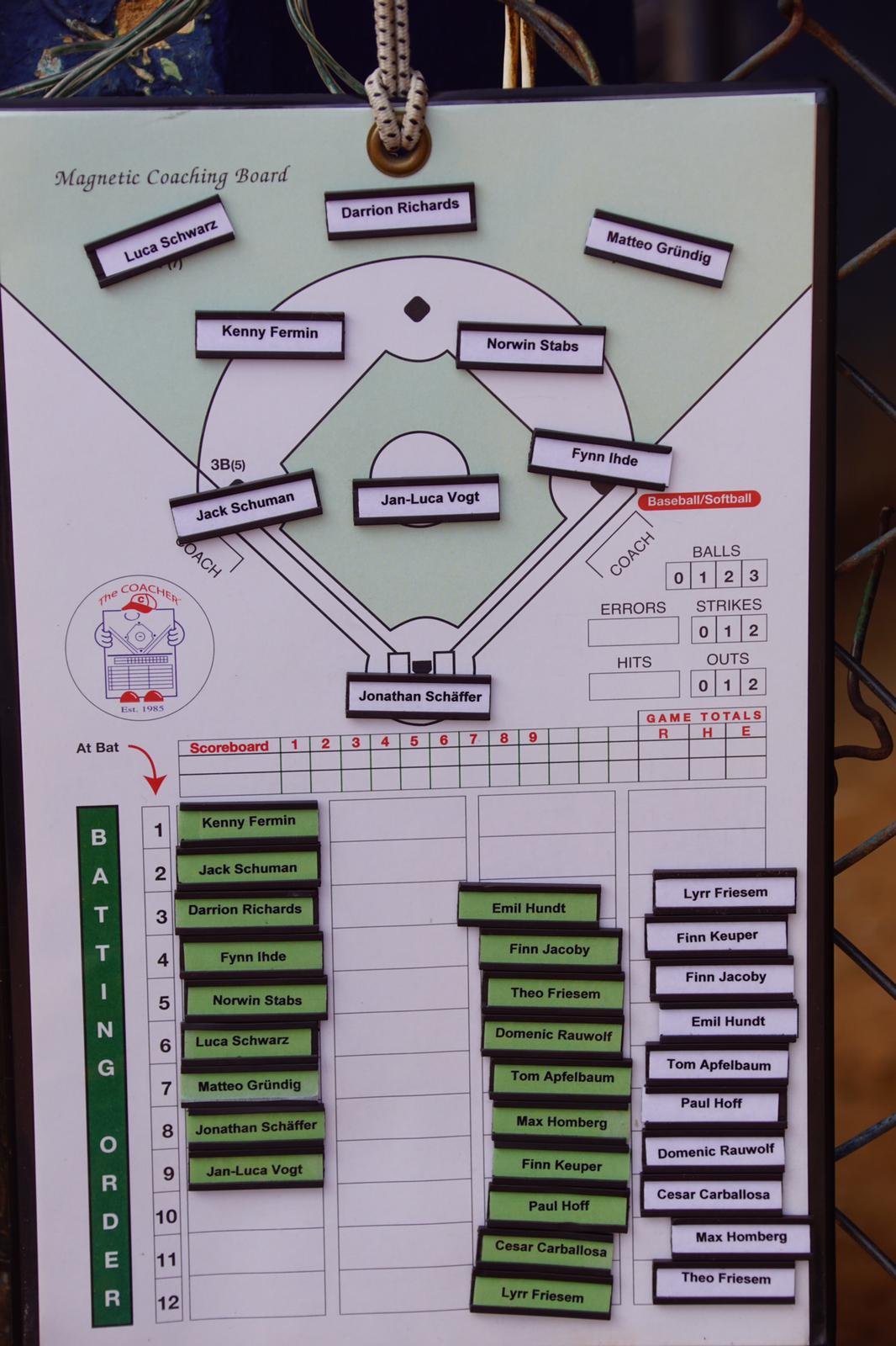 Gleich morgens um 7 Uhr stand der Bus bereit um uns nach Las Terenas zu befördern. Die Halbinsel im Norden der DR bietet ein komplett anderes Bild als der Süden rund um Santo Domingo. Die dichte grüne Vegetation und die Berge waren wunderschön anzuschauen. Nach 2,5 Stunden erreichten wir unser Ziel, ein wunderschöner Platz (für dominikanische Verhältnisse) in mitten der Stadt erwartete uns. Yordani Ventura, ein Superstar der KC Royals der leider 2016 bei einem Unfall verstarb, lernte dort das Baseballspielen. Die Wände sind verziert mit seinen Bildern, ein Held der Stadt. Wir wurden sehr freundlich empfangen, machten uns warm und legten gleich los. Ein ganz anderes Team stand auf dem Platz. Der kleine “Anschiss” am Abend zuvor schien gefruchtet zu haben. Die Jungs hatten eine komplett andere Körpersprache. Jan Luca Vogt struggelte zwar anfangs kam aber schnell wieder zurück und warf vier starke Innings. Die komplette Lineup unsererseits sah sehr sharp aus an der Platte und wir kamen schnell aufs Scoreboard. Aggressives Baserunning und gute AtBats bescherten uns einen soliden Vorsprung. Das Highlight setzte dann Darrion Richards der mit Bases Loaded den Ball aus dem Leftcenterfield beförderte. Die vielen Zuschauer waren begeistert von den “Alemanes” und zollten ihren Respekt, wollen uns nächstes Jahr auf jeden Fall wiedersehen. Die Defense stand ebenfalls solide und so brachten wir einen souveränen 16:3 Sieg nach Hause. Endlich, der Knoten könnte geplatzt sein, die Jungs waren sichtlich erleichtert und auch wir Coaches happy, dass wir unser Potential abrufen konnten. Der 12-jährige Tom Apfelbaum machte im 5. Inning den Laden dicht und wir gewannen per Ten Run Rule.