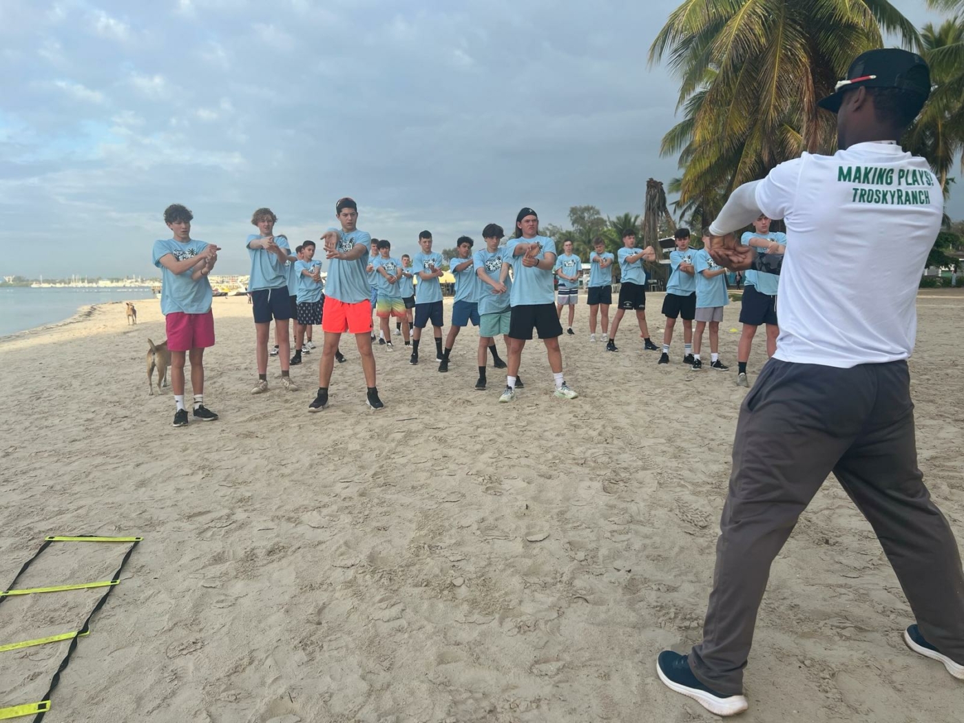 Leider hielt der Regen an und das Freitagspiel musste ausfallen. Stattdessen gab es ein Whiffle Ball Abenteuer am Beach von Boca Chica. Dort konnte der Regen die Jungs auch nicht schocken, sie spielten und spielten und zogen immer mehr einheimische Zuschauer an, die dem regen Treiben interessiert folgten. Am Samstag Vormittag sah es dann zunächst weiterhin übel aus. Während des Morgentrainings am Platz öffneten sich die Wolkenpforten erneut und es goss wie aus Eimern. Der Platz war praktisch überschwemmt. Dennoch zogen wir durch, machten das was möglich war und nutzten jeden freien, trockenen Zentimeter, um irgendwie zu trainieren. Dann brach die Wolkendecke auf, und wie das so ist bei 30 Grad+ wurde alles relativ schnell wieder trocken und der Platz bespielbar.