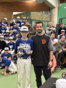 Als kleines vorweihnachtliches Geschenk gab es wieder Awards für die stärksten Athleten des Winterballs. So erhielten unsere kleinen Helden einen an Superhelden angelehnten Award für den schnellsten Runner (Flash Award), stärksten Hitter (Hulk Award) und härtesten Werfer (Thor Award). Jona Butt (Untouchables Paderborn) warf den Baseball mit beeindruckenden 72 MPH und gewann somit souverän den Thor Award. Mit blitzschnellen 4,37 Sekunden über 30 Yards konnte Nico Leone (Gauting Indians) sich den Flash Award sichern. Mit stattlichen 68 MPH Exit Velocity sicherte sich Jona Butt seinen zweiten Award, mit einer Meile Vorsprung vor seinem Teamkollegen Milos Schumacher (Untouchables Paderborn), den Hulk Award. Ein Novum bei der Awardvergabe und ein Statement für Jonas großartige Leistung.